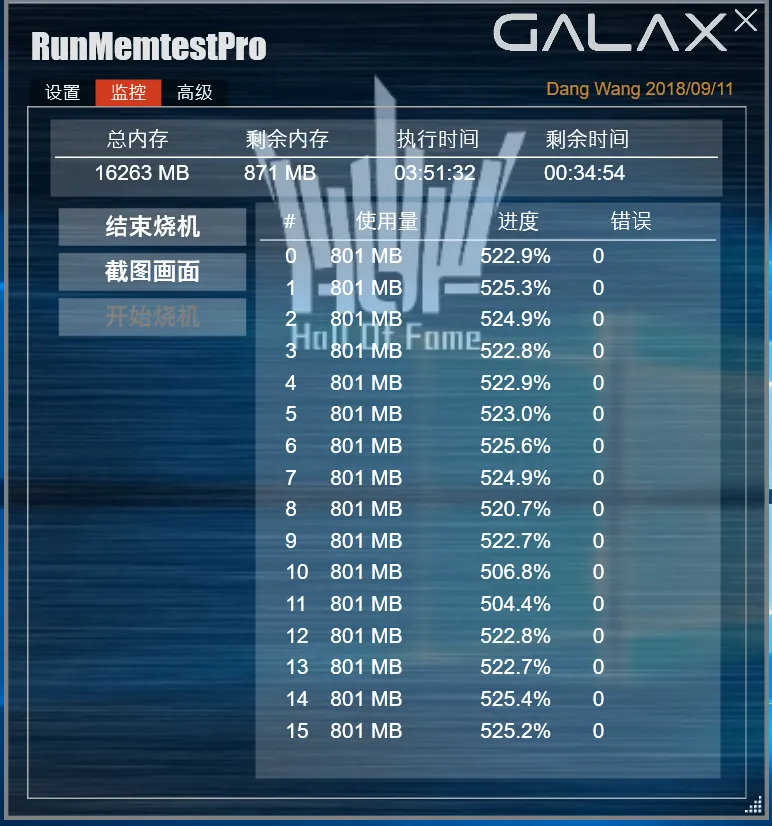 3、讓用戶的內(nèi)存在壓力滿載甚至超頻的情況下來(lái)運(yùn)行一段時(shí)間檢測(cè)內(nèi)存最大的性能情況。