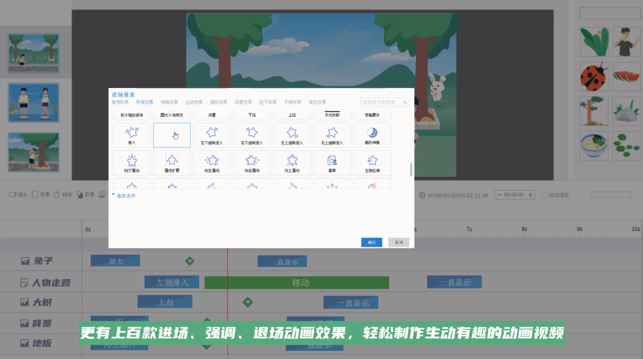 雷電、各種樂(lè)器、蟲(chóng)鳥(niǎo)、爆炸、鍵盤敲擊等音效一應(yīng)俱全,可以輕松營(yíng)造不同的場(chǎng)景氛圍,使動(dòng)畫視頻豐富多彩、生動(dòng)活潑。