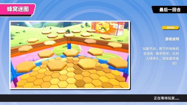 規(guī)則:多層的蜂窩地板,只要有人在地板上觸碰 1 秒左右就會消失,屬于淘汰和生存類型的圖,最下面是粘液,能夠在地板上堅持到最后一人的玩家獲勝吃雞。