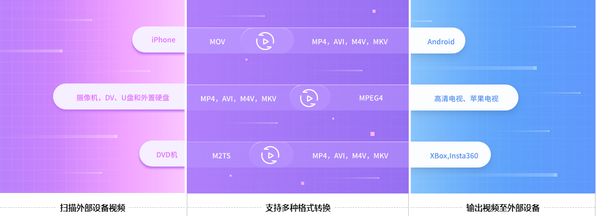 1.視頻格式:MP4、MOV、MKV、M4V (Only for Windows)、FLV等。