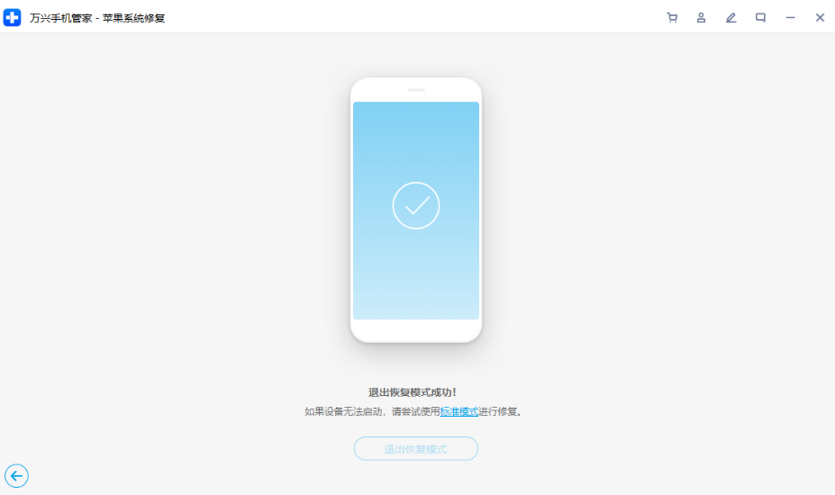 ⑵啟動 萬興手機管家 工具并在主界面中選擇“修復”。將您的 iDevice 連接到計算機后,選擇“iOS 修復”并單擊右下方的“退出恢復模式”。