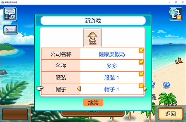 3、然后設(shè)置度假島名稱(chēng),服裝、帽子等;