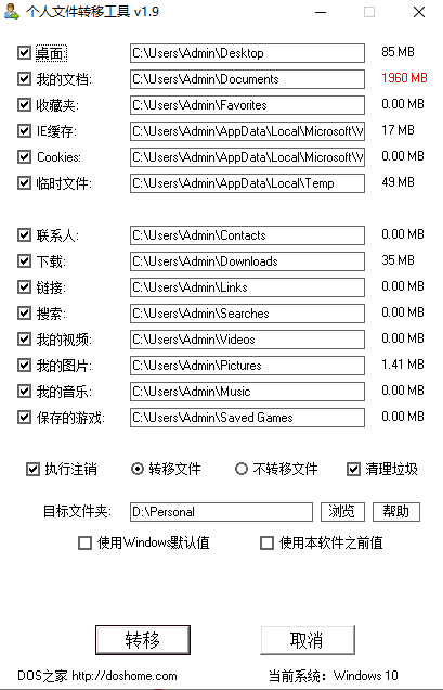 個(gè)人文件轉(zhuǎn)移工具可以把“我的文檔”、“桌面”等個(gè)人文件夾從C盤轉(zhuǎn)移到別的磁盤。一次使用,永久有效,再也不用擔(dān)心重裝或恢復(fù)系統(tǒng)后文件丟失了。另外,通過轉(zhuǎn)移還可以為系統(tǒng)減肥,永不反彈,而且可以節(jié)省備份系統(tǒng)的時(shí)間和減少映像的體積。