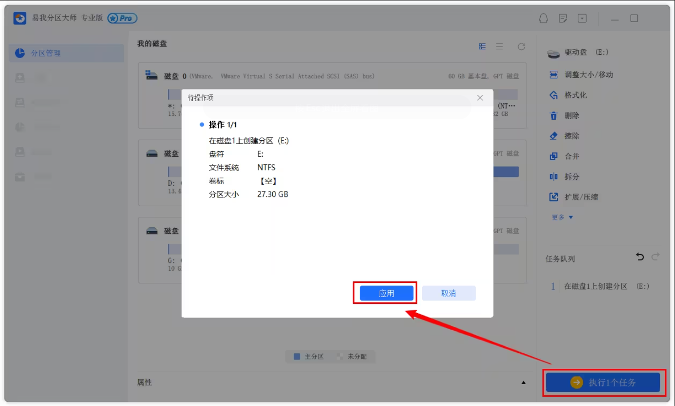 確定要執(zhí)行操作時,點擊軟件右下角的【執(zhí)行1個任務(wù)】進入待操作項頁面,選擇【應(yīng)用】以執(zhí)行該項操作。