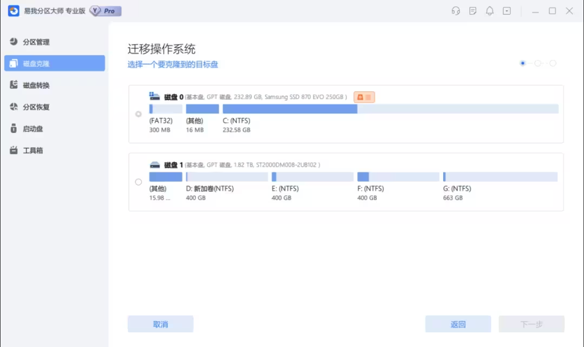 易我分區(qū)大師簡化了克隆流程,使得用戶可以更加快速和方便地完成克隆操作,提高了克隆的效率,使得用戶可以更加方便地管理和使用磁盤。