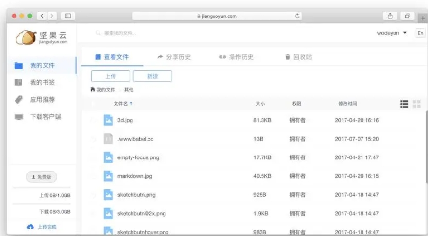 在“我的堅果云”頁面,你可以查看自己的文件。如果有文件夾,可以點擊進入查看文件夾中的文件。