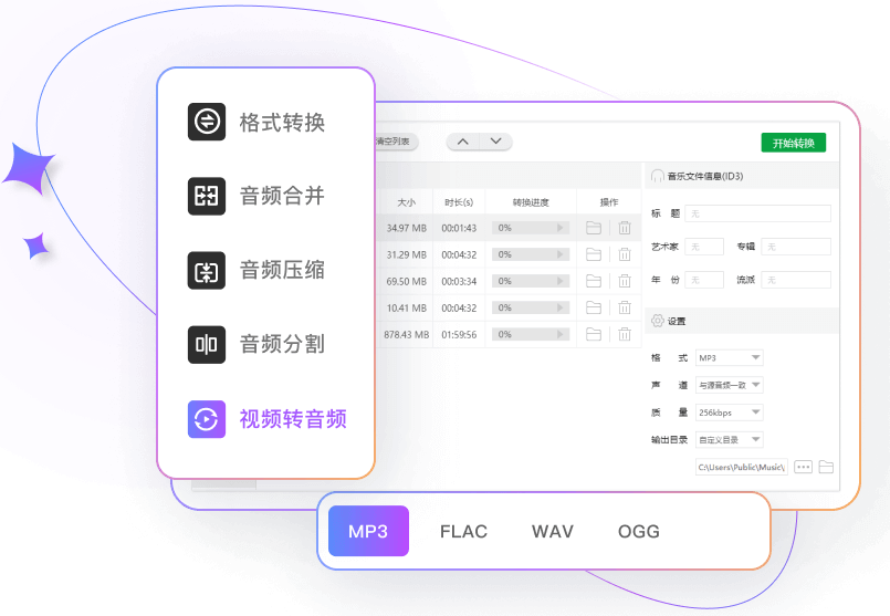 5、全面覆蓋常見音頻格式相互轉(zhuǎn)換