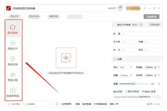 第一步、首先,雙擊打開軟件,在左側(cè)可以看到有以下五種音頻處理功能,選擇其中一種即可;