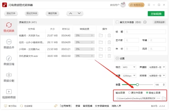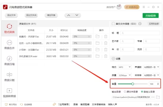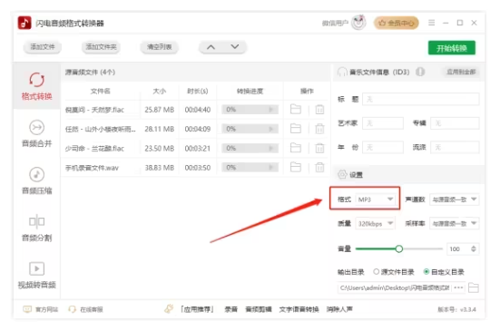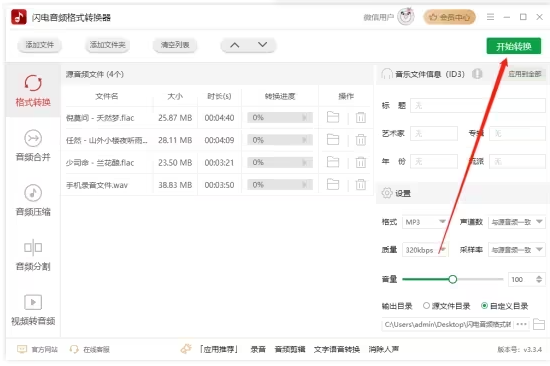 添加多個(gè)音頻文件,勾選一鍵合并,選擇轉(zhuǎn)換的音頻格式并且調(diào)整音頻質(zhì)量后,一鍵處理完成,操作分分鐘。