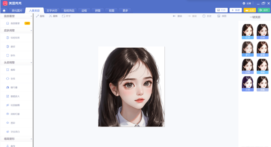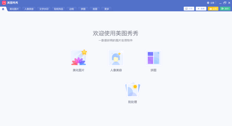 PC端美圖秀秀,其功能強大、操作簡單、素材庫豐富,其中的功能包括美化圖片、人像美容、拼圖、批處理,是好多女孩子P圖的必備工具。今天帶來的是綠色版,軟件無廣告零彈窗,其包括美化圖片、人像美容、文字水印、貼紙飾品、邊框、摳圖等功能。