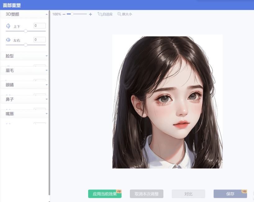 這每樣功能都是女孩子的P圖的最愛,我在這里給大家演示幾個功能。面部重塑:可以調(diào)節(jié)你的臉型、眉毛、眼睛、鼻子、嘴唇,你的臉的五官都可以重新調(diào)整,以達到完美的效果!