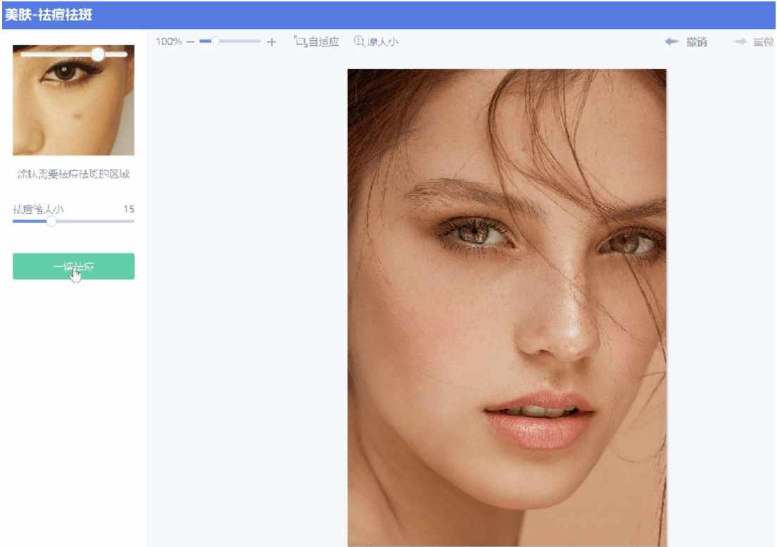 袪斑袪痘:如果臉部有斑有痘的小伙伴,可以通過這個功能“一鍵袪痘”,臉部的立刻變光滑了。