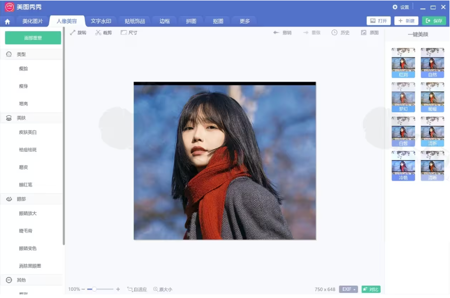 膚色:皮膚較黑的臉部圖片,可以通過美膚的功能,調(diào)節(jié)美白的力度,可一鍵的美化圖片,讓皮膚看起來細膩光滑。