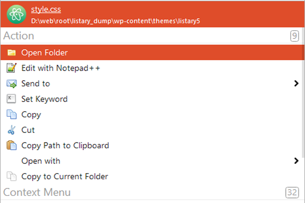 在當(dāng)前目錄中運(yùn)行命令提示符,顯示/隱藏文件擴(kuò)展名,顯示/隱藏隱藏文件和文件夾,將列表內(nèi)容導(dǎo)出到可以在Excel中打開(kāi)的CSV文件,將文件夾路徑復(fù)制到剪貼板等等,只需單擊一下或按鍵。