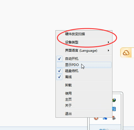 1、如需刪除硬盤或指定硬件,點擊右下角圖標(biāo)---設(shè)備類型---選擇需要去除的指定U盤或硬盤,等硬件。