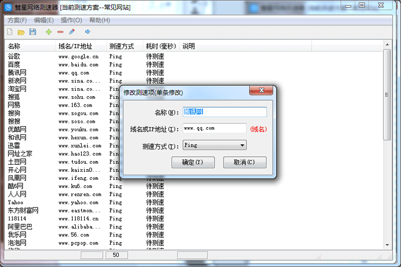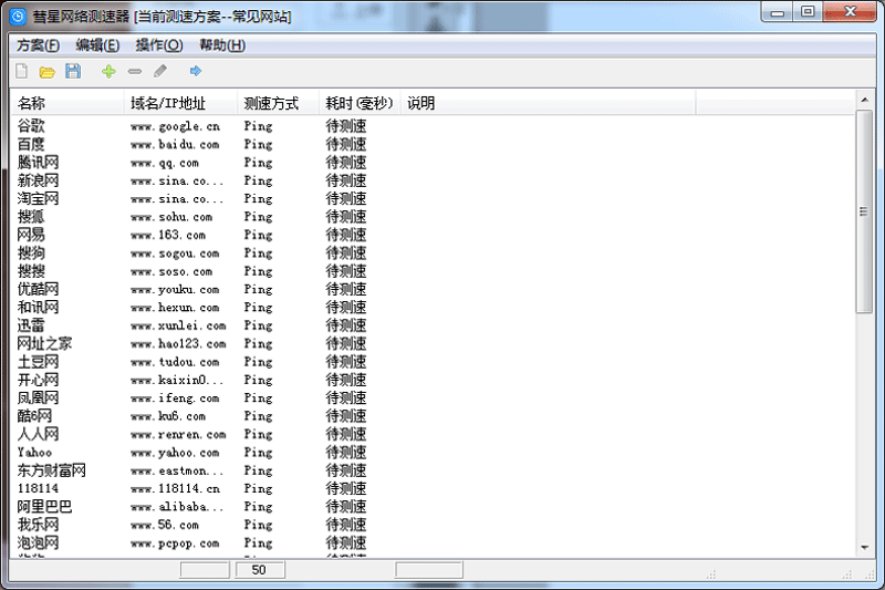 彗星網(wǎng)絡(luò)測(cè)速器是一款相當(dāng)專業(yè)的網(wǎng)絡(luò)測(cè)試軟件,能對(duì)您的電腦進(jìn)行網(wǎng)速檢測(cè),同時(shí)彗星網(wǎng)絡(luò)測(cè)速器還是一款安全無(wú)廣,免費(fèi)提供使用的軟件,用戶只需一鍵下載安裝就能直接使用的軟件,彗星網(wǎng)絡(luò)測(cè)速器支持自己編輯目標(biāo)地址列表,能保存該列表方案,還能對(duì)測(cè)試方式進(jìn)行選擇,是一款使用簡(jiǎn)單便捷且非常靈活的軟件,如果您正好也有這方面的訴求,不妨現(xiàn)在就下載試試吧!