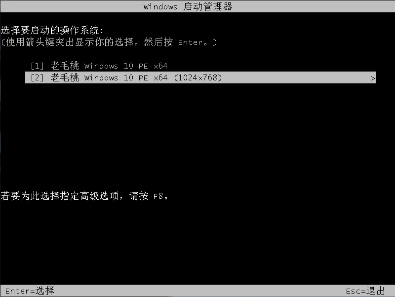 第三步進(jìn)入老毛桃主菜單后,通過(guò)“↑↓”鍵選擇“【1】啟動(dòng)Win10 X64PE(2G以上內(nèi)存)”后回車確認(rèn),成功進(jìn)入winpe。