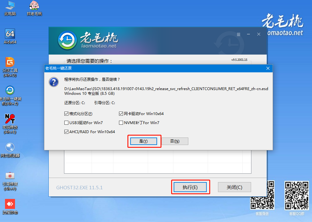 第五步這里勾選復(fù)選框內(nèi)后點(diǎn)擊“是”(建議將“網(wǎng)卡驅(qū)動(dòng)”和“USB驅(qū)動(dòng)”這兩個(gè)選項(xiàng)勾選,以免重啟后無(wú)法使用網(wǎng)絡(luò)和鼠標(biāo))