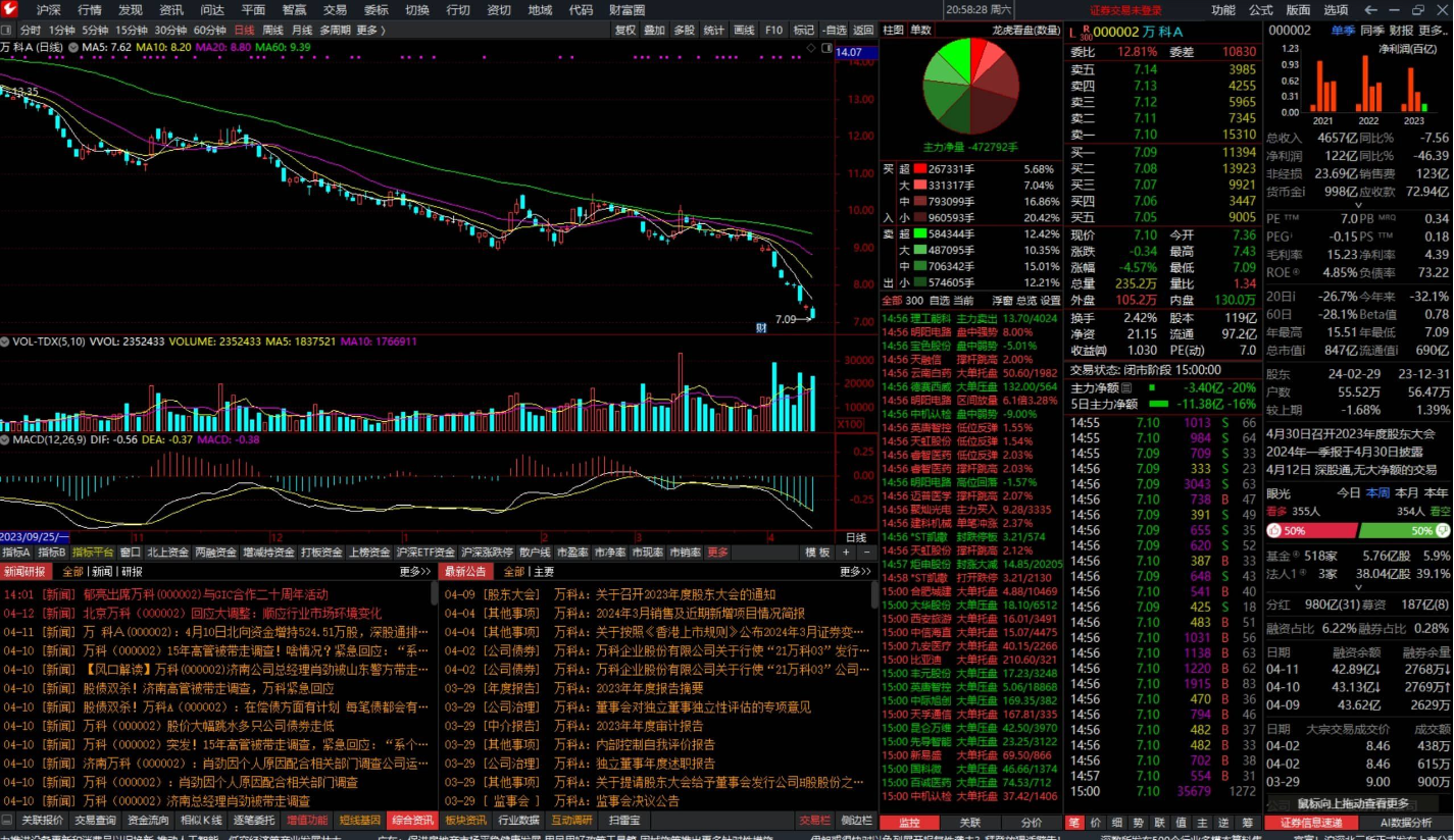 2.看看萬科的行情吧,最近鬧得沸沸揚揚的萬科,這行情足以影響其融資了,不知道壇友們有沒有買了萬科的期房的,現(xiàn)在很多人都擔(dān)心無法按期交付,在實時關(guān)注其動態(tài)。