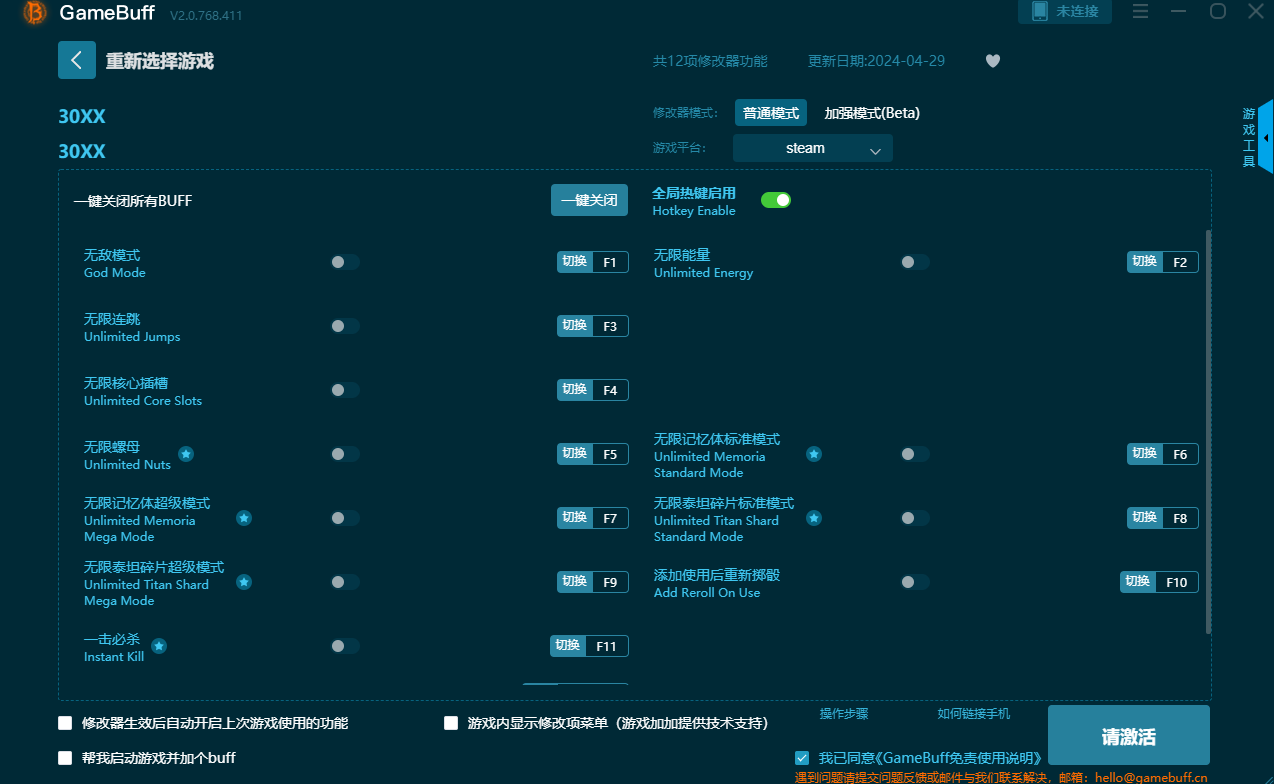 30XX是一款卡通畫面的動作冒險(xiǎn)手游,這款游戲的畫質(zhì)非常的經(jīng)典,玩家在游戲中可以進(jìn)行闖關(guān)冒險(xiǎn),并且打斗的時(shí)候非常的刺激,關(guān)卡豐富,玩法有趣,需要一定的操作性,這款修改器能夠幫助玩家們在游戲中更便捷的進(jìn)行體驗(yàn),可以增加移動速度,技能冷卻,無限生命等多種增幅,感興趣的玩家們抓緊時(shí)間下載體驗(yàn)一下吧!
