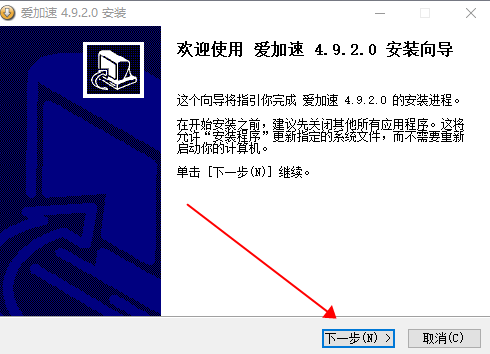 2、進入愛加速安裝向導,點擊下一步