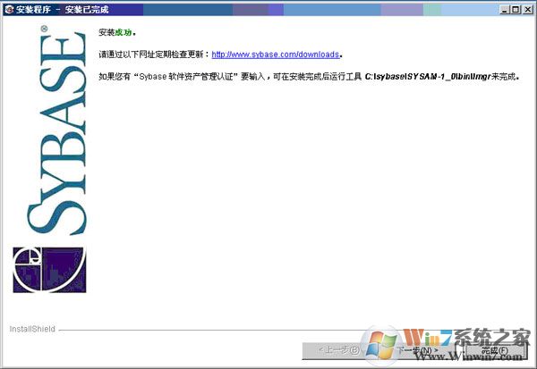 10、安裝完成,點擊“完成”,恭喜你,Sybase數(shù)據(jù)庫安裝成。
