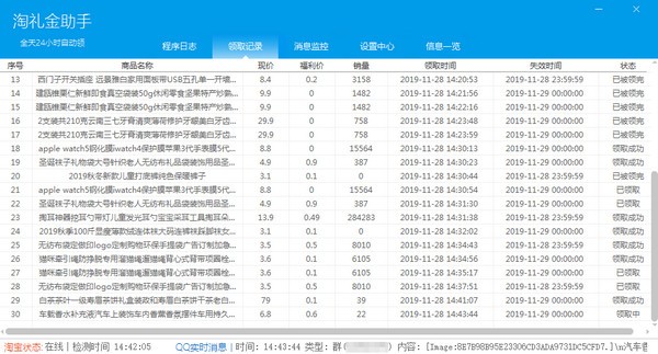 領(lǐng)取成功自動通知主人QQ賬號;