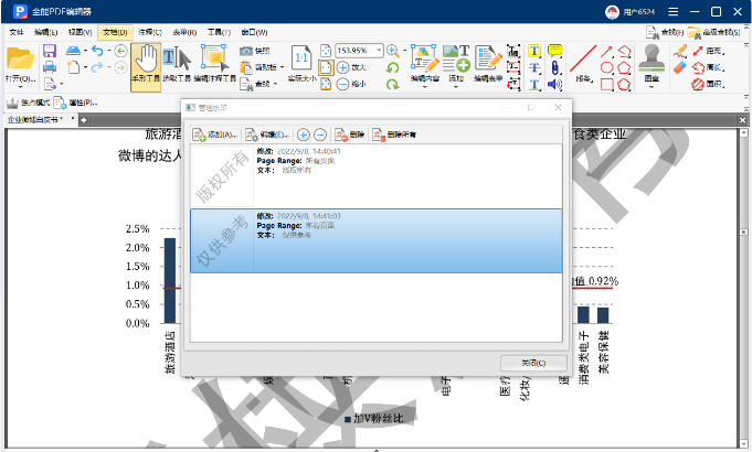 PDF水印刪減:支持一鍵刪除PDF水印,輕松快速;PDF文檔可以添加文字或圖片水印,自由調(diào)整水印的顏色、大小、位置和透明度。