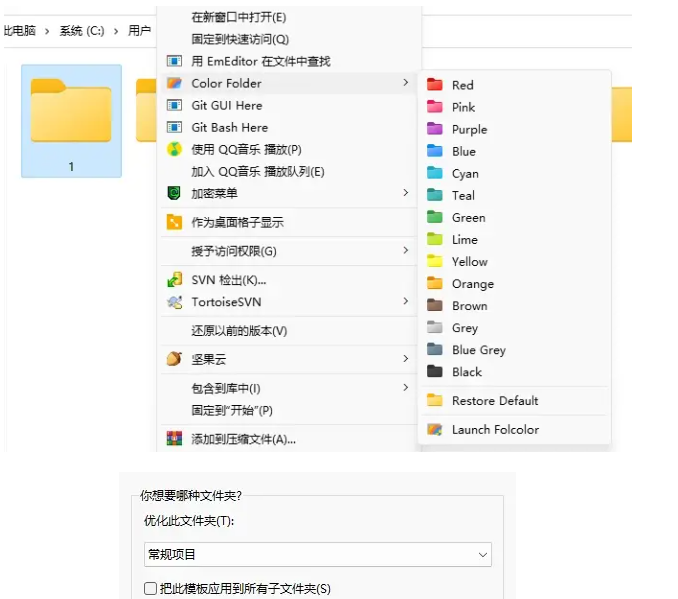1、Folcolor 操作簡便,能夠快速為多個文件夾應用不同顏色方案