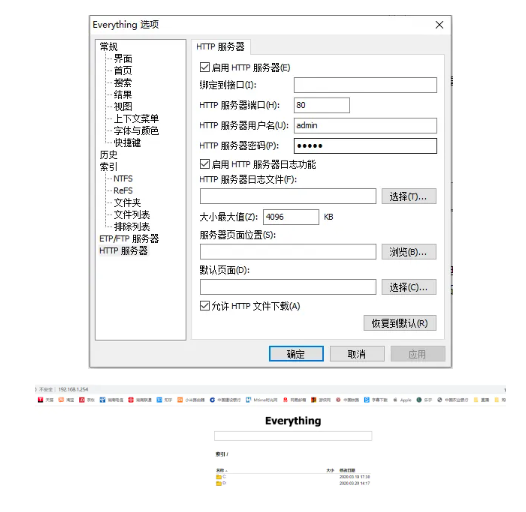 局域網(wǎng)中極速查找任意電腦中的內(nèi)容,選項(xiàng)- HTTP服務(wù)器 -“啟用 HTTP 服務(wù)器”,自定義用戶(hù)名和密碼。也可以不設(shè)置,然后在局域網(wǎng)內(nèi)輸入對(duì)應(yīng)電腦的IP地址。就可以搜索到他電腦上的文件了。