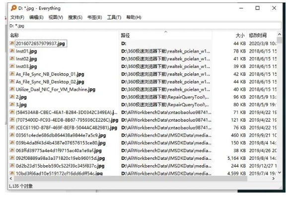 舉例:搜素D盤(pán)下面所有.jgp格式的文件,輸入D: *.jpg(冒號(hào)后面有空格)