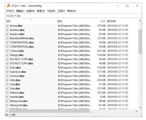舉例:搜索C盤(pán)和D盤(pán)下面所有.doc的文件,輸入*.doc