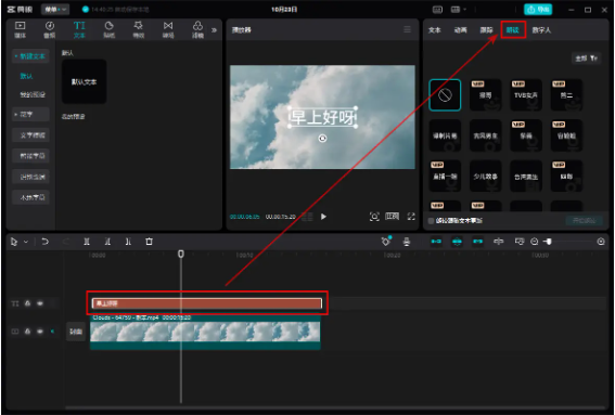 6、如需添加文本素材,可點(diǎn)擊“示例文本”選擇文本素材。