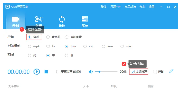 3.音頻錄制選項(xiàng):支持從攝像頭、電腦內(nèi)部聲音、揚(yáng)聲器、麥克風(fēng)錄制,并支持語音降噪和錄制高品質(zhì)聲音。