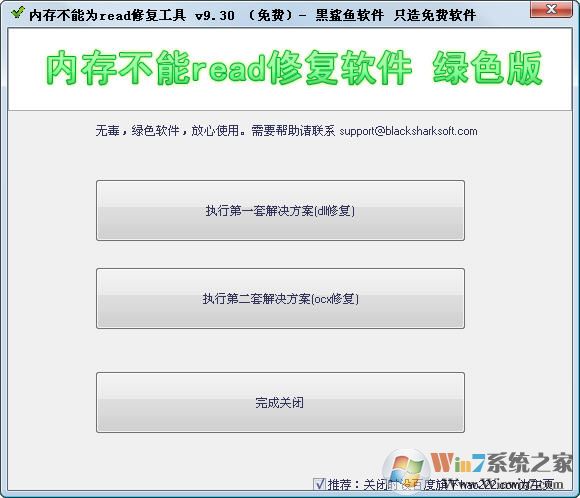內(nèi)存不能為read修復(fù)工具,是黑鯊魚(yú)軟件出品的免費(fèi)軟件。用來(lái)修復(fù)Windows系統(tǒng)出現(xiàn)內(nèi)存錯(cuò)誤,如:“0XXXXXXXXX指令引用的0x00000000 內(nèi)存,該內(nèi)存不能read”,“0XXXXXXXXX指令引用的0x00000000 內(nèi)存。本軟件綠色無(wú)毒,請(qǐng)放心使用。