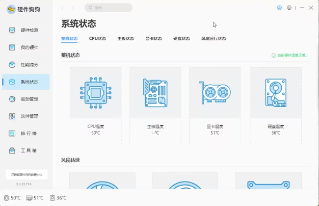 硬件狗狗是由驅(qū)動之家推出的一款電腦檢測工具。它能夠快速檢測電腦各個硬件的運(yùn)行狀態(tài),并提供硬件中文廠商信息、準(zhǔn)確的硬件溫度監(jiān)測、綜合跑分測試、CPU測試、顯卡測試、內(nèi)存測試和磁盤性能測試等功能。 硬件狗狗主要分為了八個板塊:硬件檢測、我的硬件、性能跑分、系統(tǒng)狀態(tài)、驅(qū)動管理、軟件管理、排行榜、工具箱。