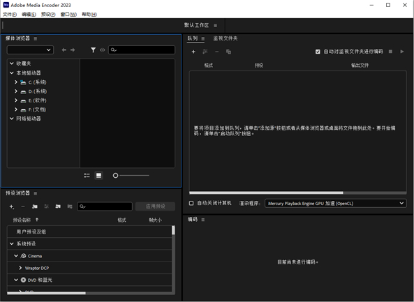 A. “編碼”面板 B. “隊列”面板 C. 預(yù)設(shè)瀏覽器 D. 監(jiān)視文件夾 E. 媒體瀏覽器