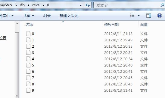 2.現(xiàn)在在本地新建一個(gè)文件夾,用來做SVN庫。這里我在D盤新建了一個(gè)名為mySVN的文件夾,然后右鍵選擇tortoiseSVN->Create Repository here,這樣SVN庫就已經(jīng)創(chuàng)建好了可以看到該文件夾中增加了一下目錄:
