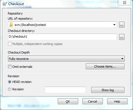 我們新建一個(gè)文件夾,起名checkout1,右鍵點(diǎn)擊選擇SVN Checkout,打開以下視圖: