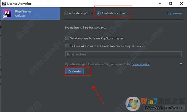 1、在桌面運行打開軟件,彈出注冊界面,選擇evaluate for free,然后點擊evaluate試用軟件