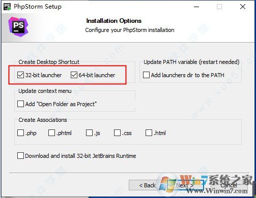 3、根據(jù)用戶系統(tǒng)位數(shù)選擇版本進行創(chuàng)建桌面快捷方式,32位和64位建議都勾選