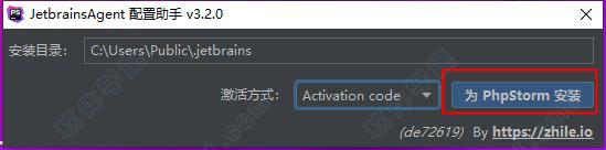 4、軟件打開之后,彈出激活方式,首先選擇activation code,然后點擊為PhpStorm安裝,最后點擊是重啟軟件