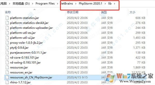 6、最后將resources_zh_CN_PhpStorm.jar漢化補丁復制到軟件安裝路徑lib文件下即可