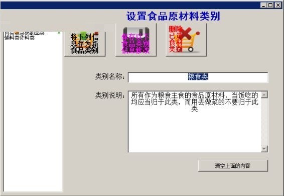 5、即可打開食品原材料類別設(shè)置面板: