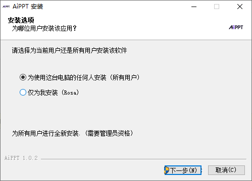 1、下載安裝程序并打開(kāi),選擇為所有用戶安裝,點(diǎn)擊下一步