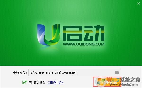 1、下載并打開u啟動u盤啟動盤制作工具,選擇好安裝位置,點擊立即安裝;