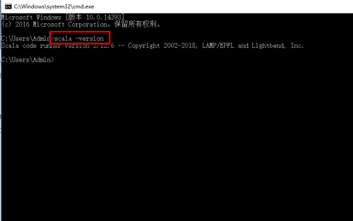 安裝完成后我們需要檢驗是否安裝成功,Win+R打開命令行,輸入 scala -version,若出現(xiàn)Scala的版本信息則說明安裝成功,如下圖所示。