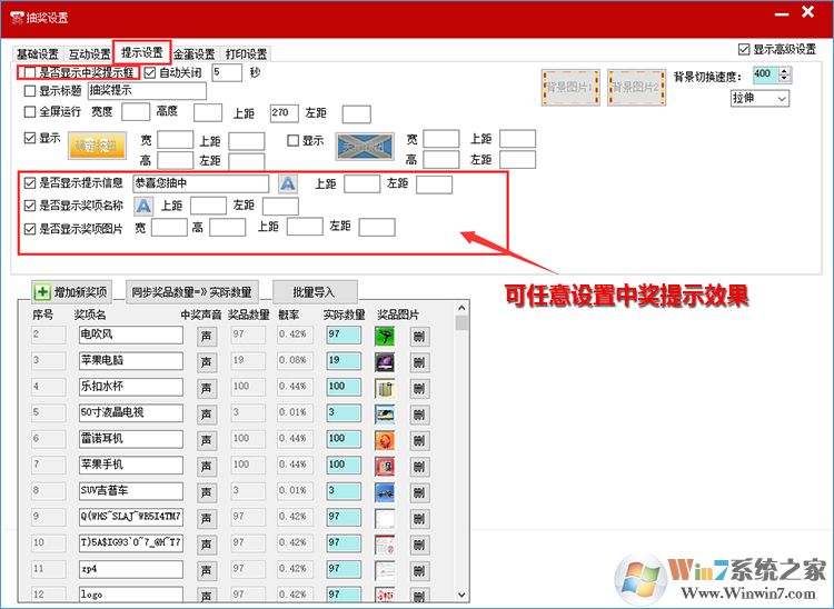 支持中獎(jiǎng)中獎(jiǎng)提示,可設(shè)置自動(dòng)關(guān)閉提示信息;