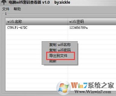 2.、在軟件界面找到當(dāng)前連接的wifi,右擊鼠標(biāo),就可以導(dǎo)出密碼為txt文件!