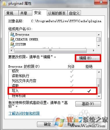 右擊屬性,選擇安全,點擊編輯,將everyone的權(quán)限中寫入改為拒絕。